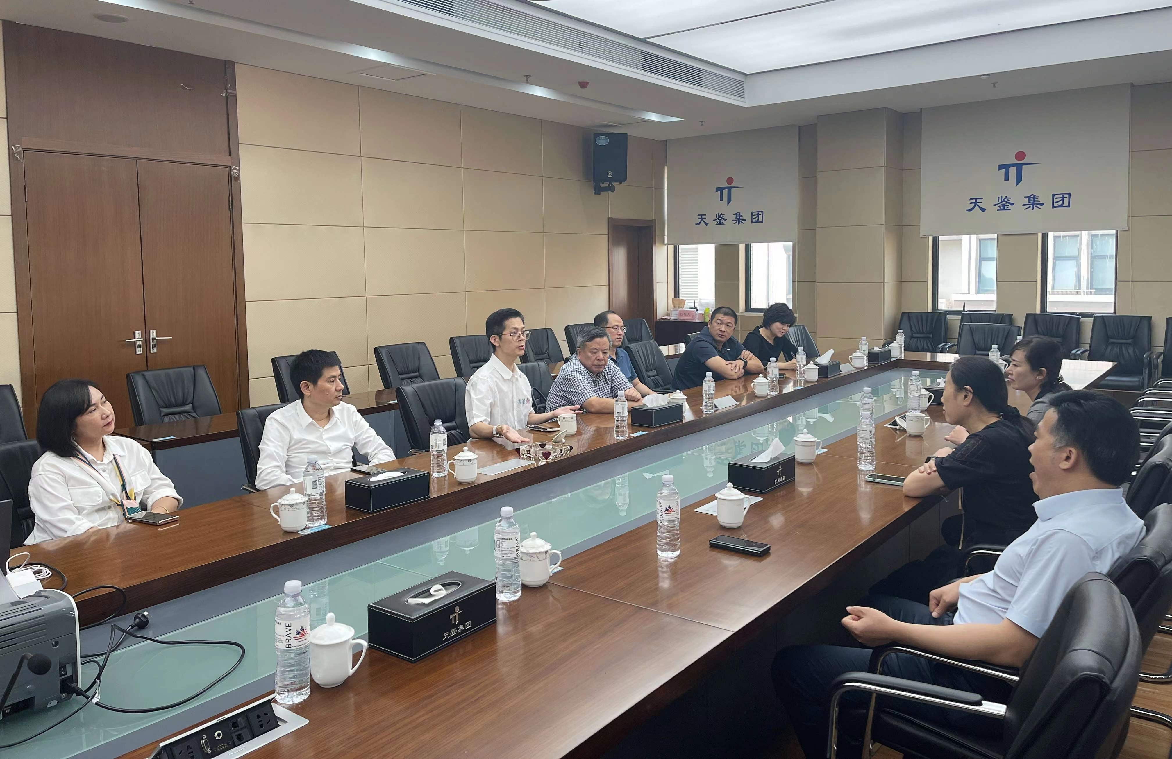 调研组一行首先参观了公司展厅,认真观看了展出图片及实物,了解了天鉴从创立至今的发展历程,并对公司的发展及建设工作给予了充分的肯定,随后双方在会议室进行座谈。