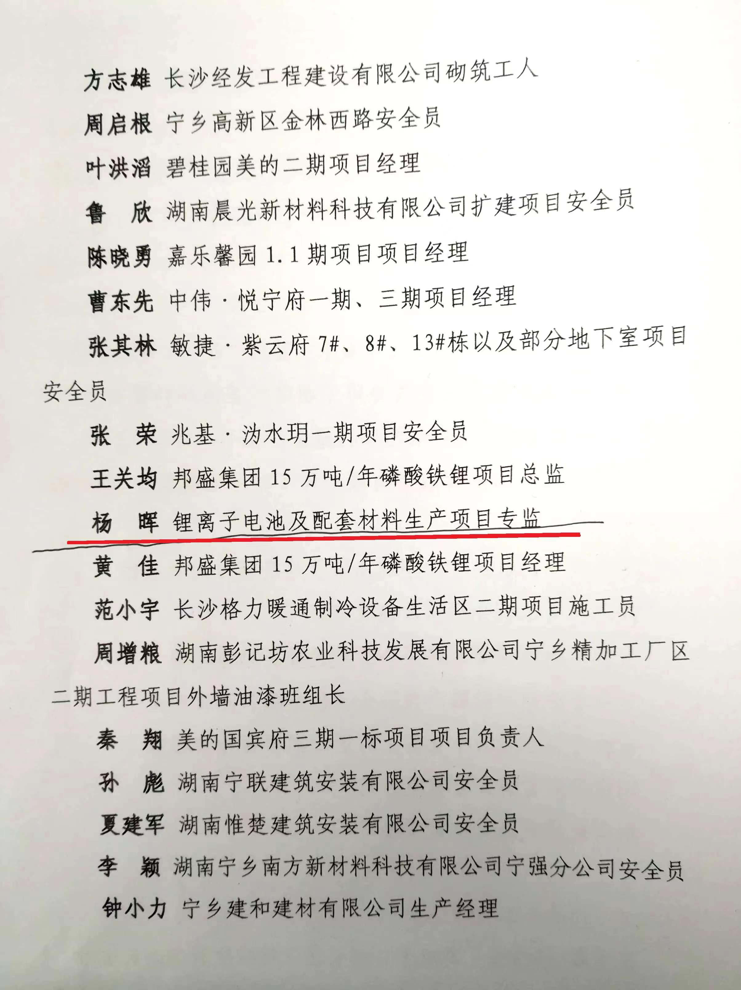 为树立典型,激励先进,进一步推动宁乡市安全生产持续稳定发展,11月21日,宁乡市建安委在宁乡市政府会议中心召开了2022年第四季度工作会议。会上通报表彰了今年三季度建筑工程安全生产先进集体、优秀个人,我司比亚迪宁乡10GWh锂离子电池及配套材料生产项目监理部杨晖同志获宁乡市“2022年三季度建设领域安全生产工作优秀个人”。