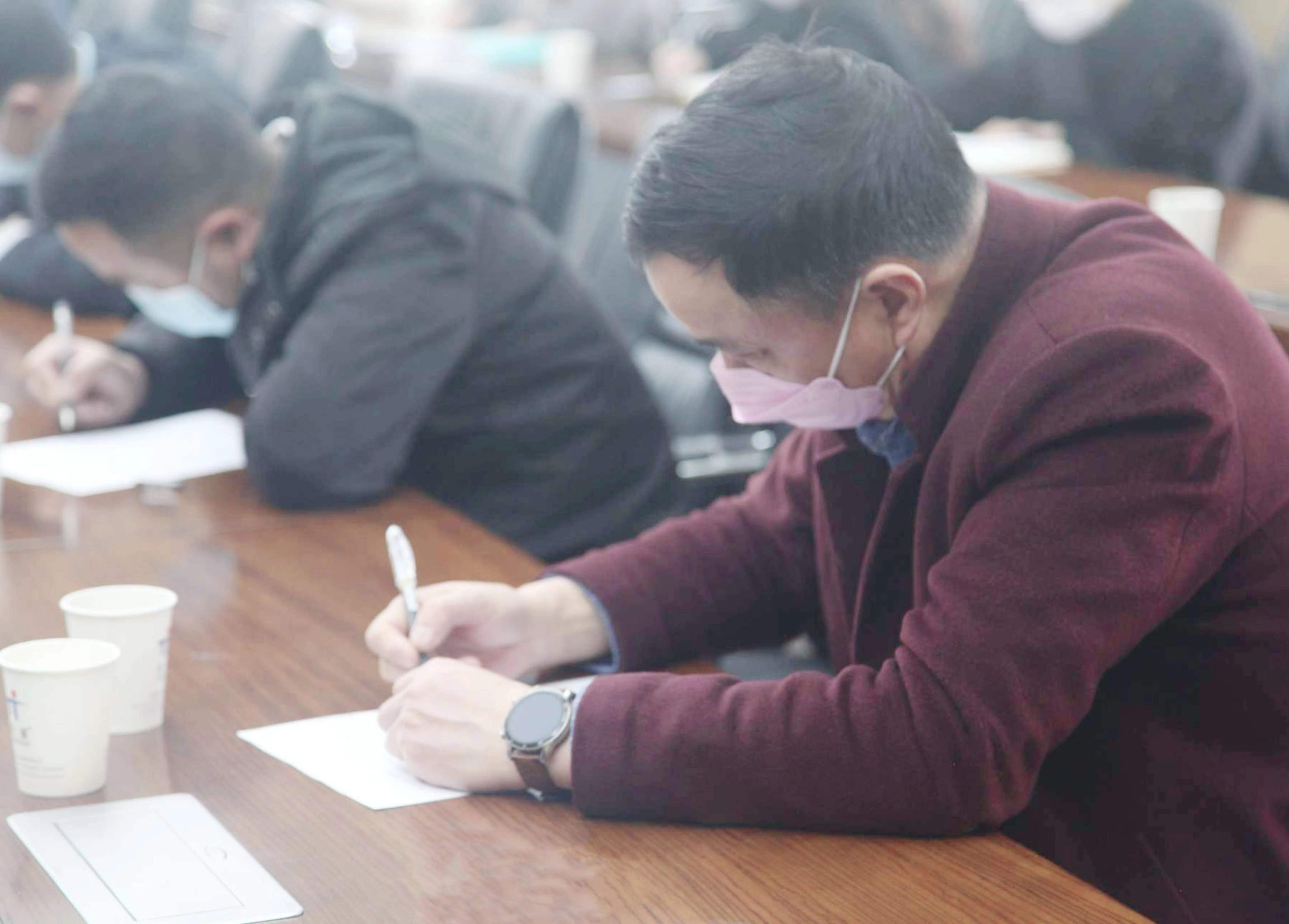 会上,在事先没有通知大家的情况下,进行了一场突击测试,进一步检验大家是否符合优秀员工标准,考试内容涵盖公司基本情况、规章制度、业务板块、荣誉获得等方面,整个过程严肃认真,考试结果真实有效。